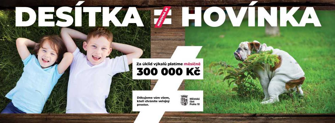 Desítka nerovná se hovínka, hlásá pilotní materiál kampaně “nerovná se”. Upozorňuje na to, že jen odstraňování psích exkrementů z veřejných ploch pomocí speciálních vysavačů stojí 300 tisíc korun měsíčně. Další slogany budou vymýšlet samotní občané, městská část je k tomu vyzývá na sociálních sítích.